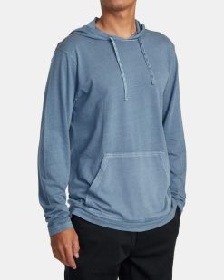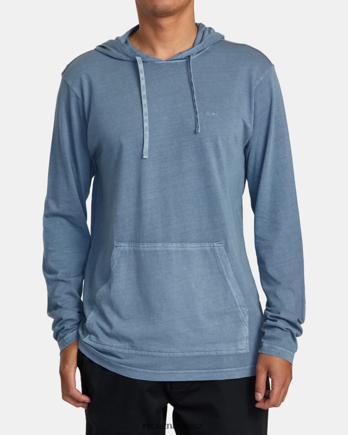 oblečení RVCA muži Tričko s dlouhým rukávem s kapucí s pigmentem ptc průmyslová modrá BN4N08435