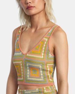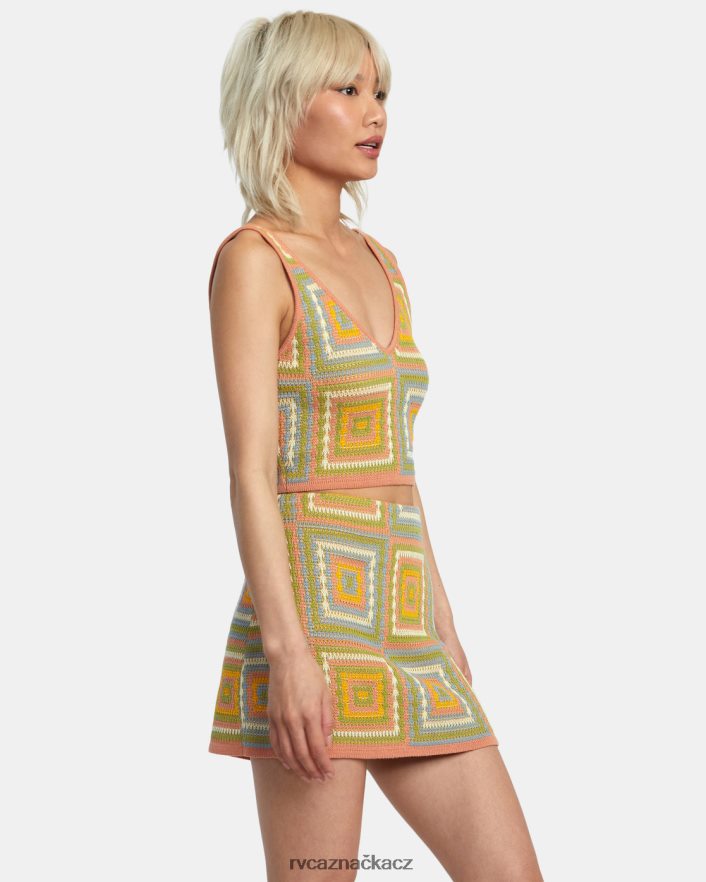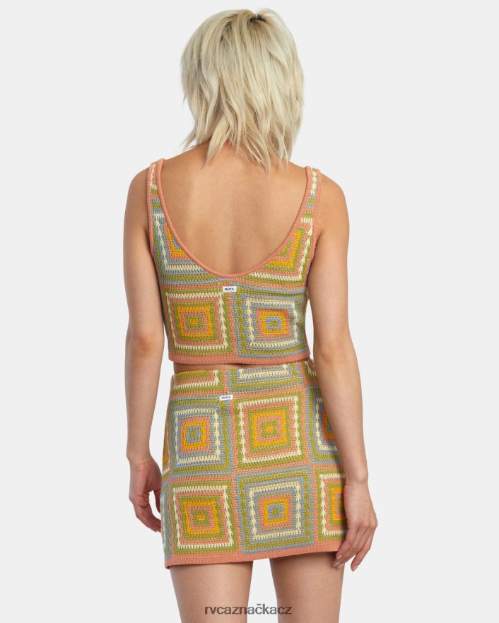 Toto tílko inspirované háčkováním vyrobené ze směsové pleteniny má hluboký výstřih do V a tkaný čtvercový design. miluješ sadu podívejte se na odpovídající sukni.