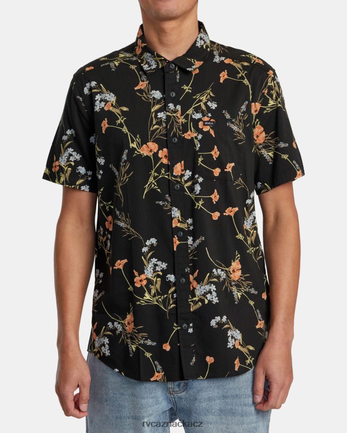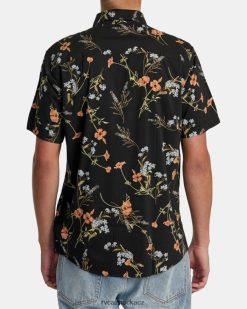 oblečení RVCA muži to udělá potisk košile s krátkým rukávem černá květinová BN4N08279