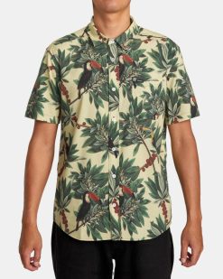 oblečení RVCA muži košile s krátkým rukávem s anglickými růžemi náladová modrá BN4N08145