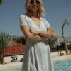 Tyto midi šaty s potištěným šikmým střihem, vyrobené ze saténově hladké modalové látky, mají výstřih do V a překřížený detail zavazování na zádech. buďte ležérní, nebo si je upravte na večer.
